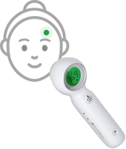 날때까지 체온계를 관자놀이 또는 이마에 거리를 유지합니다.